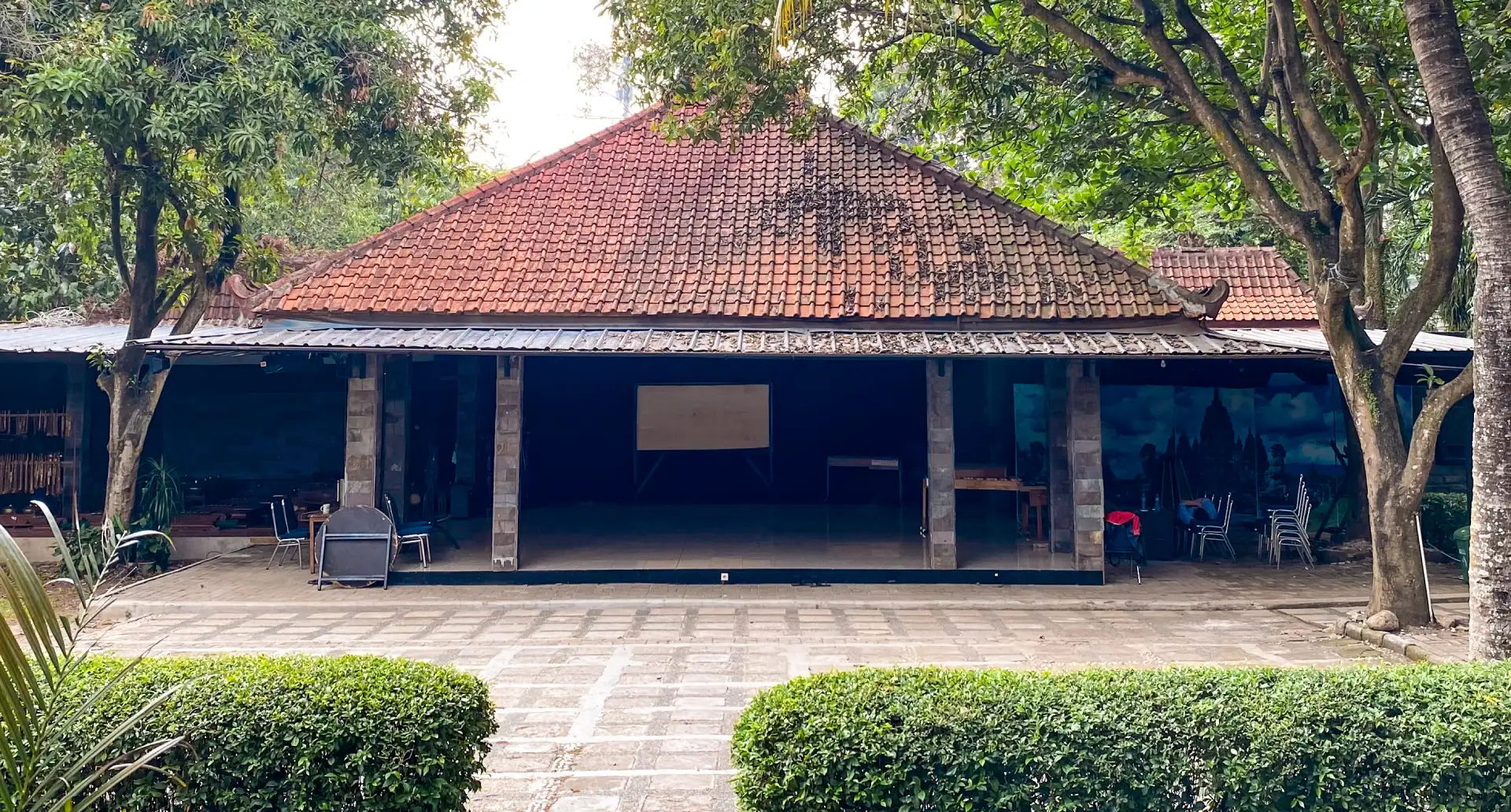 adalah paviliun tradisional Jawa yang terletak di dalam kawasan Puspobudoyo, Indonesia. Ini berfungsi sebagai tempat serbaguna untuk berbagai acara budaya, pertunjukan dan pertemuan. Desain arsitektur pendopo mencerminkan warisan budaya Jawa yang kaya, menampilkan ukiran kayu yang rumit, struktur atap berjenjang, dan tata ruang terbuka yang berpadu sempurna dengan lanskap sekitarnya.